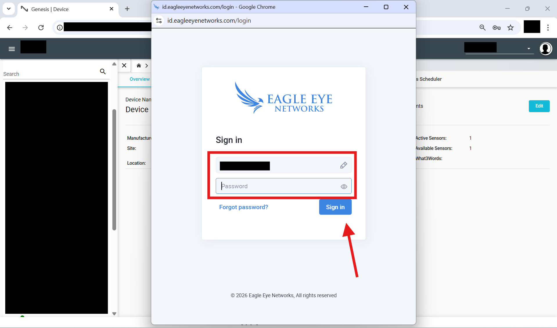 Genesis automatically triggers the Eagle Eye login redirection within the application.