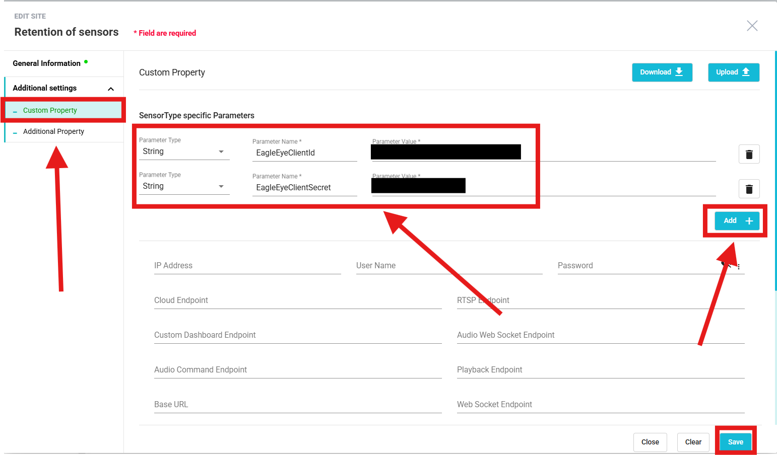 If you want to use different Eagle Eye accounts for different sites, the credentials must be configured at the Site level where the device will be onboarded.